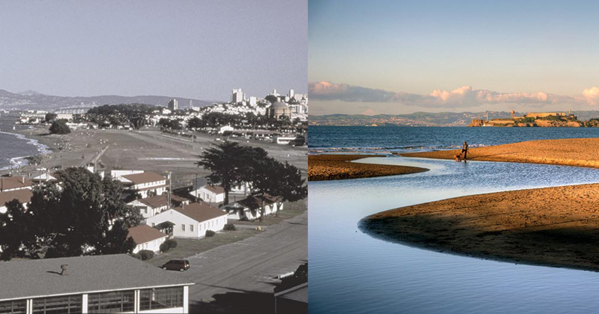 Imagine Crissy Field in the late 1990s. About 70 percent was covered by concrete and asphalt, and the rest of the shoreline was a mash of abandoned barracks, storage sheds, debris-strewn beach, and weed-infested runway.