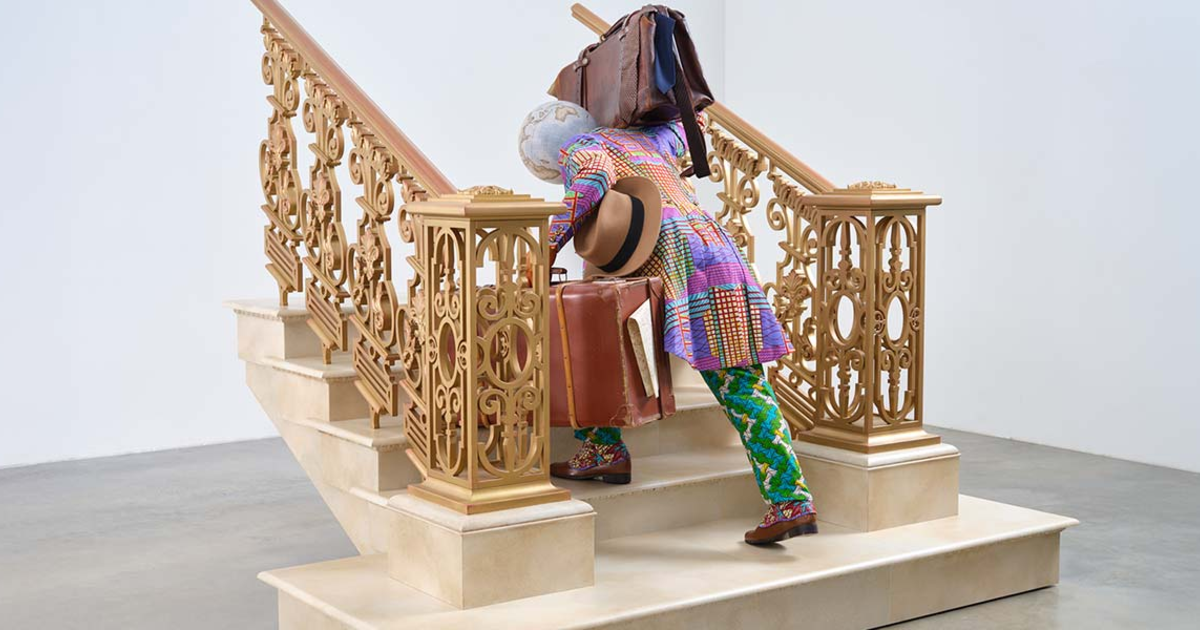 - British artist Yinka Shonibare’s large-scale sculptural installation Man Moving Up (2022), which embodies the struggle for economic and social ascent encountered by Black Americans migrating from the rural South to the North, following the Civil War and during the Great Migration