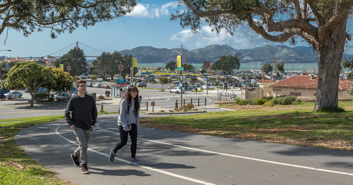 Paved, accessible stretches of the Bay Trail connect upper and lower Fort Mason. However, the path narrows and sharply turns where it meets the heavily trafficked Laguna Rd., creating a dangerous situation for the thousands of pedestrians, joggers, and bikers who pass though that spot each day.
