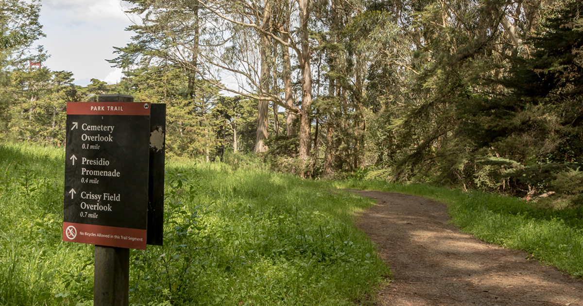 Completed in May 2010, the Park Trail provides a north-south trail corridor through the Presidio, extending 1.7 miles from the 14th Avenue Gate to Crissy Field.