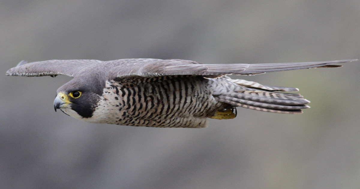 More about the Peregrine Falcon: The physical prowess of this bird-hunting raptor—the fastest member of the animal kingdom—is legendary. Through special adaptations to its nostrils and eyes, the peregrine is able to endure speeds of over 220 mph during its hunting dive (“stoop”).
